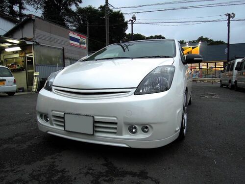 こんばんは! 今日は先日からお預かりしてるNHW20プリウスが完成しましたので エアロも加工加工しての取り付けです。 マフラーは完全ワンオフ物です。 マフラーカッターはポルシェカイエンを流用です。 流石はポルシェデザイン!!「」です。 横からで~…